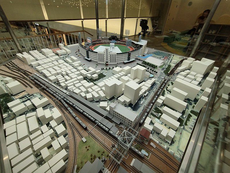日生球場の跡地なので、野球場をイメージした広場とかあるんですね。