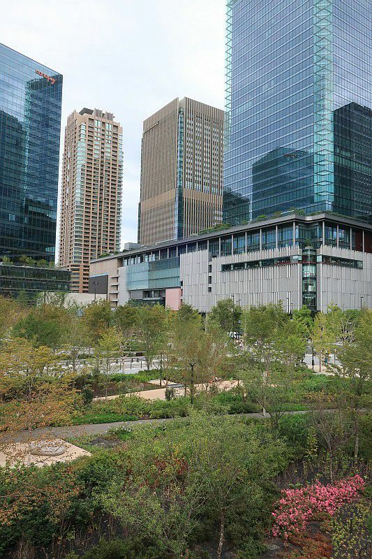 ビル群の中に緑の公園ができていて、だいぶ違和感があるというか、