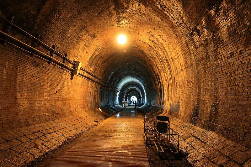 内部はレンガ造りで、オレンジ色の照明に照らされて幻想的です。