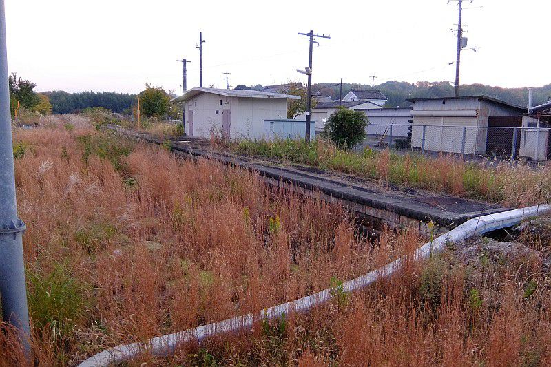 2018年11月11日 北宇智駅 旧道・廃線跡 0 北宇智駅に近くを通ったのでひさしぶりにちょっと寄ってみると、 いつのまにか昔の駅舎がなくなっていました。 たぶんここに駅舎があったんだと思いますが。 スイッチバック時代の旧ホームはまだ残っていますが、まわりは草だらけ。 草の中に、レールも少し残っているみたいでしたが。 スイッチバックの線路も、まだ少しだけ残っていました。 ちなみに、スイッチバックが現役の頃の旧駅舎はこんな感じでした。 スイッチバック時代のホーム。 春日色もすでに過去のものですねえ。。。 現役時代のスイッチバックの線路。 こっちから見ると、だいぶ高低差あったんですね。 [1回]PR