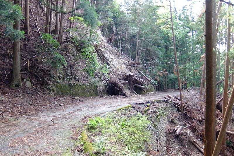 大雨で木が崩れてきた形跡があったり。