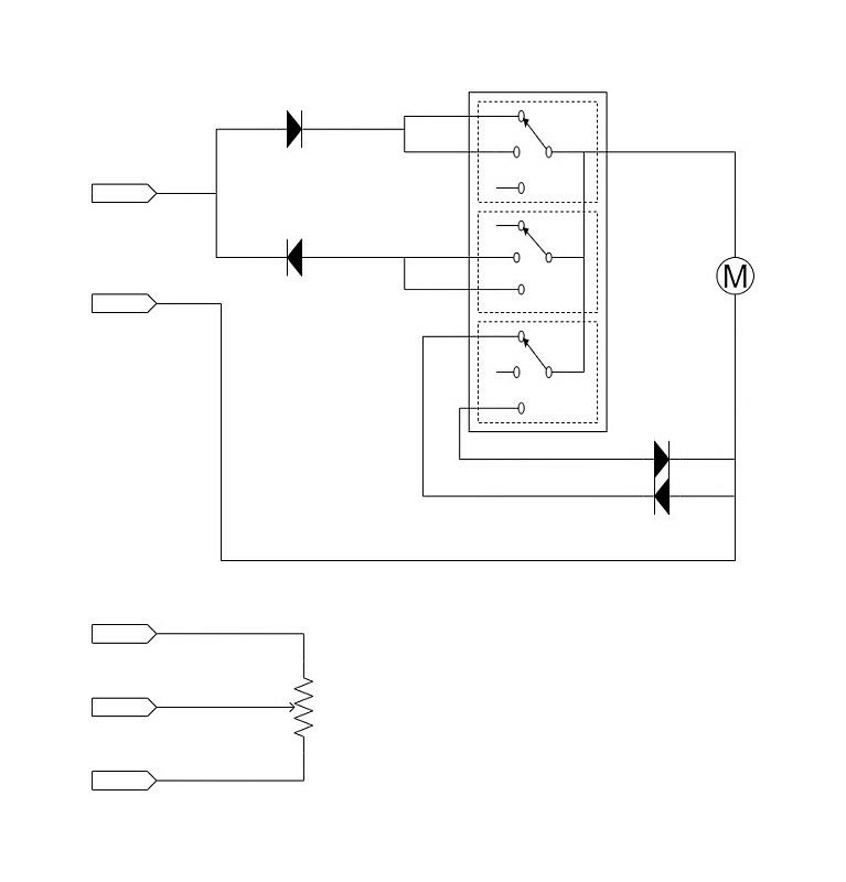 ダイオードが4つありますが、2つは整流用で、2つはモータの逆起電力対策のようです。