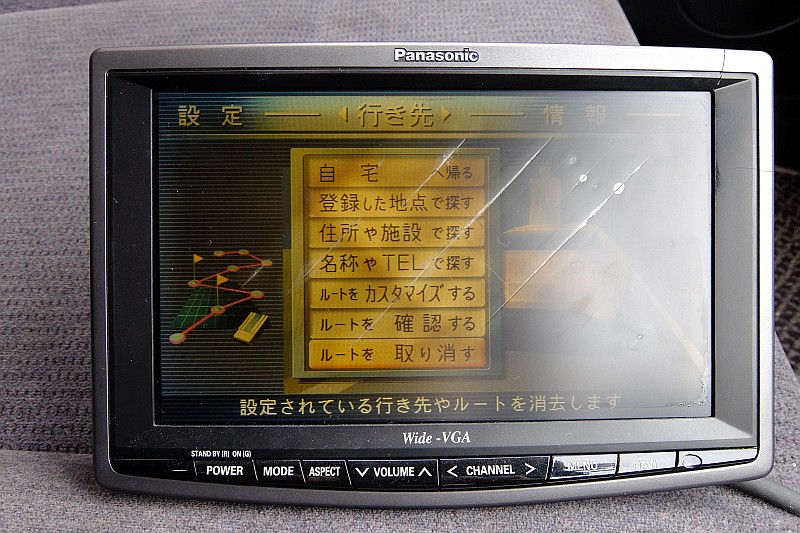 15年間ダッシュボードに置いていたら、液晶も割れてきて、色も黄色いし、画面も暗いし。