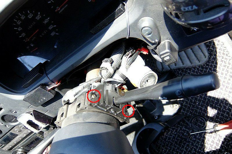 ディマースイッチのASSYは、赤丸の2箇所のネジを外すだけで取れました。