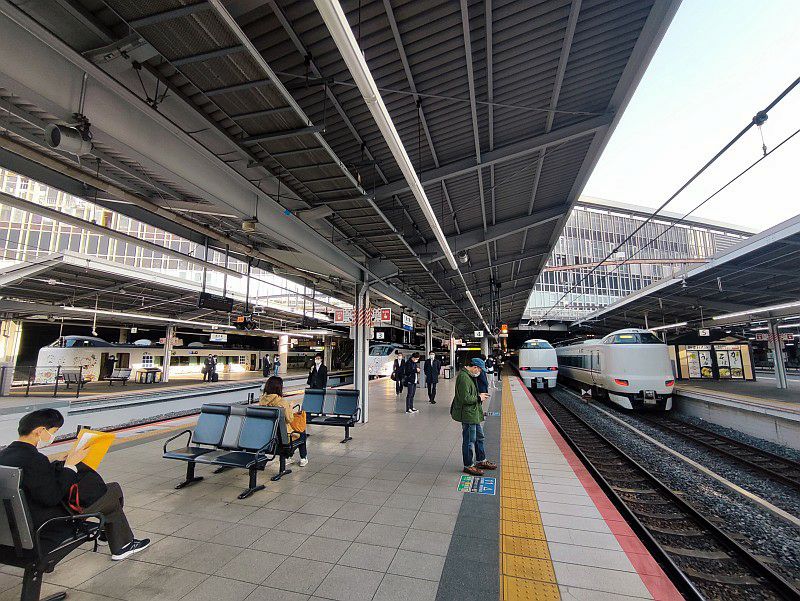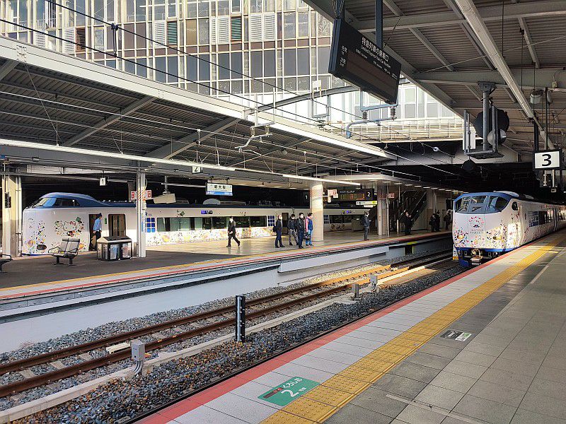 左から「はるか」「はるか」「サンダーバード」「こうのとり」で、
