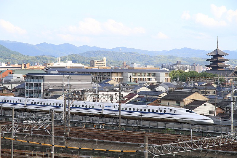 展望デッキから東寺バックでN700系。