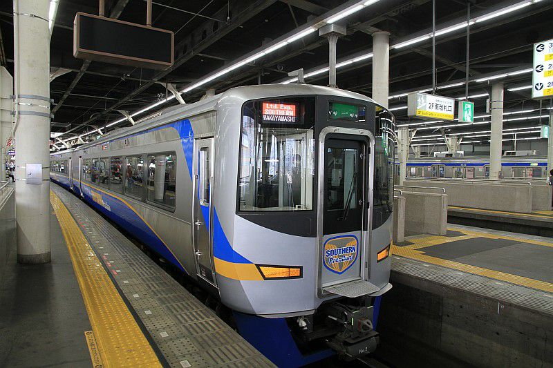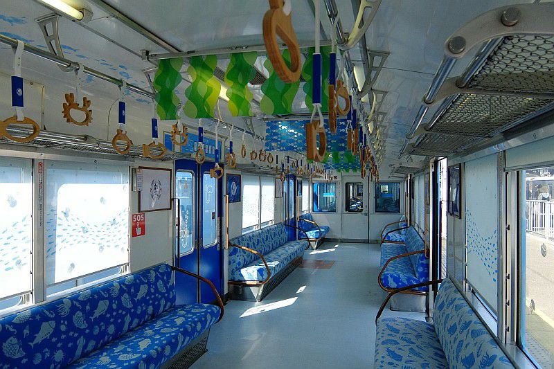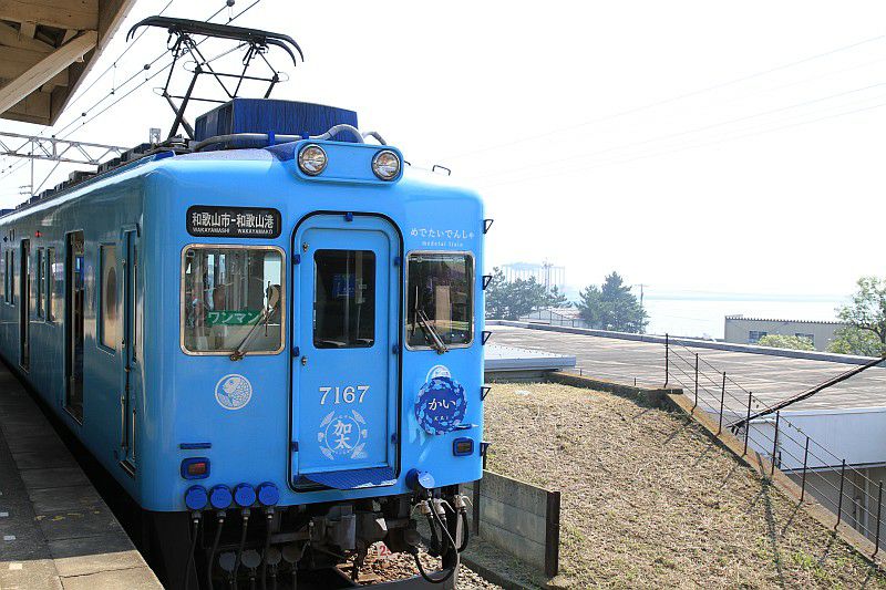 和歌山市から和歌山港までは水色の「めでたいでんしゃ」。