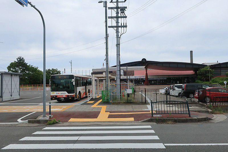 駅前の道を真っ直ぐ行くとバス停に行けるそうです。