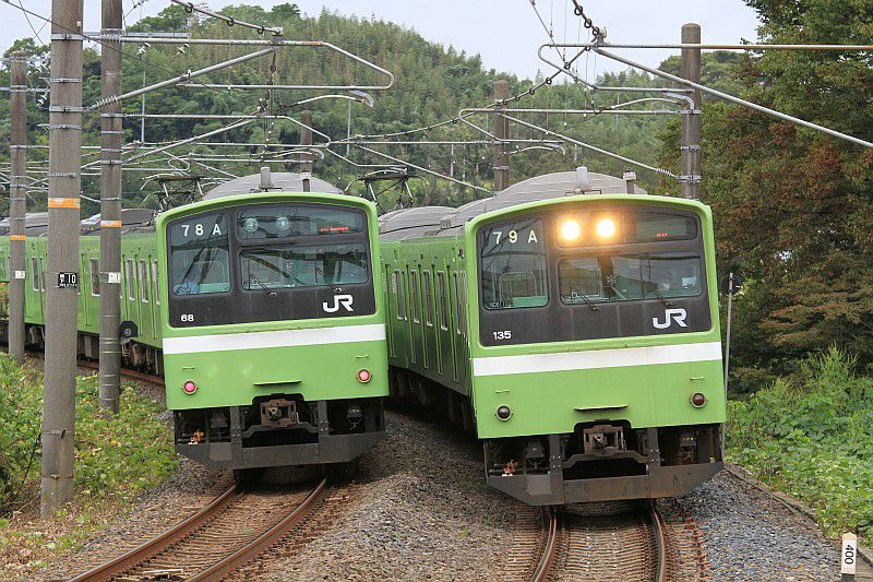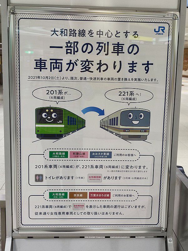 2021年09月26日 大和路線201系 鉄道 0 大和路線の201系が来週から置き換わるそうなので、最後にちょっと見に行ってみました。 王寺駅で2本並んで停車中。 王寺駅3番線に入線する普通列車。 あまり意識したことなかったですが、 王寺駅の配線はけっこう分岐を繰り返さないと入線できない構成なんですね。 三郷駅に移動して奈良側の直線区間。 最後は、大阪側のカーブでタイミング良く2本が並びました。 駅で見かけた、車両置き換えの案内ポスター。 なんかかわいい・・・。 よく見ると「一部の列車は引き続き201系で運行します」って書いてました。 てっきり、全部一気に置き換わるのかと思ってました。 おまけ。王寺駅の雪丸くん。 [0回]PR