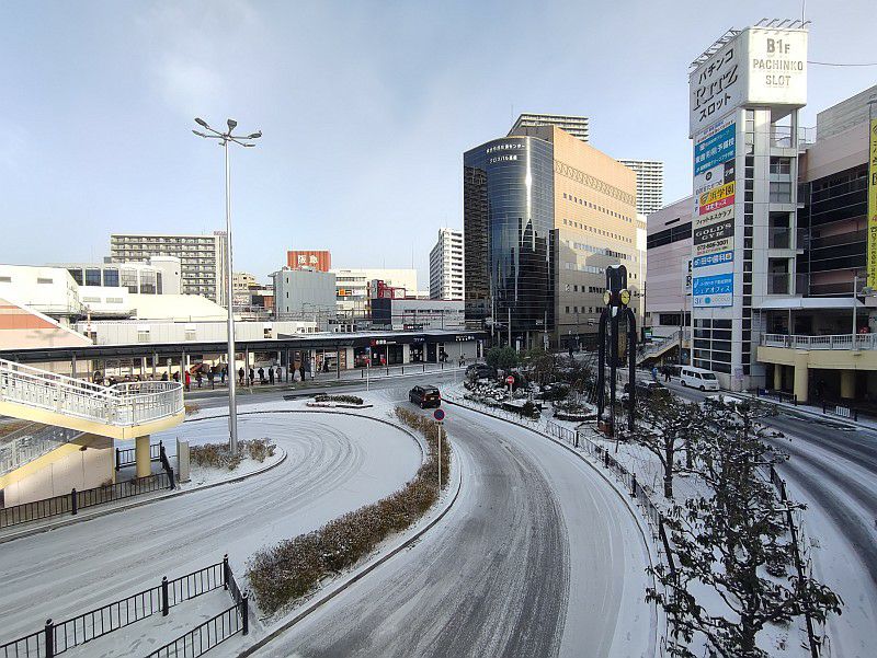 大阪市内では雪はありませんでしたが、高槻まで来るとだいぶ積もってますねえ。