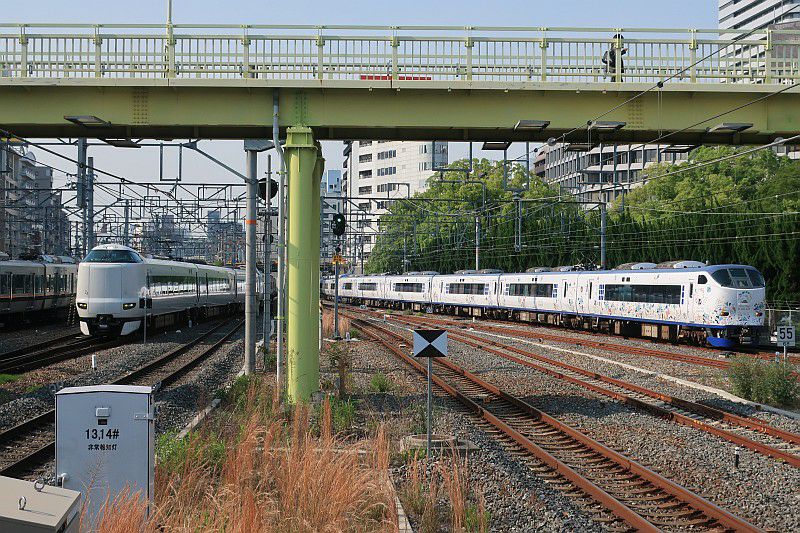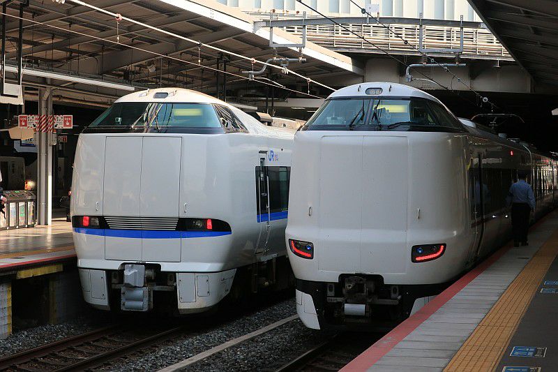左から271系「はるか」、281系「はるか」、683系「サンダーバード」、287系「こうのとり」