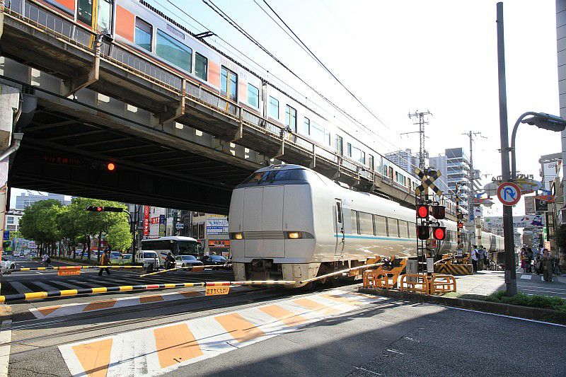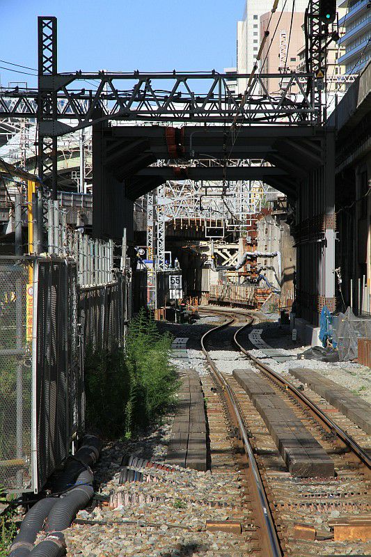踏切から新大阪方面を見ると、不自然な蛇行ががありました。