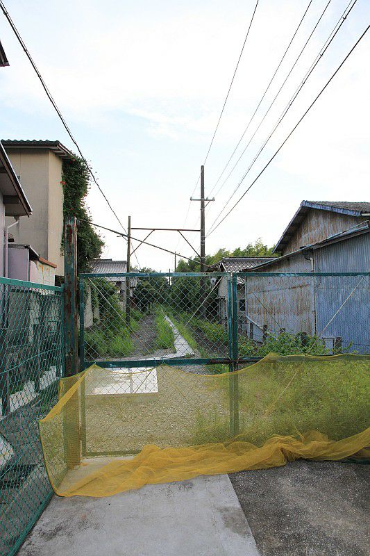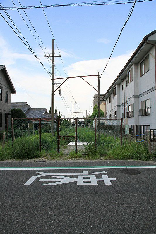 単線幅の架線柱まで残っていたので、名鉄の旧線跡かと思っていましたが、