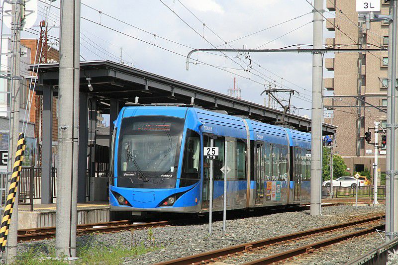 田原町駅の周りで待っていたら、かわいらしい車両がやって来ました。