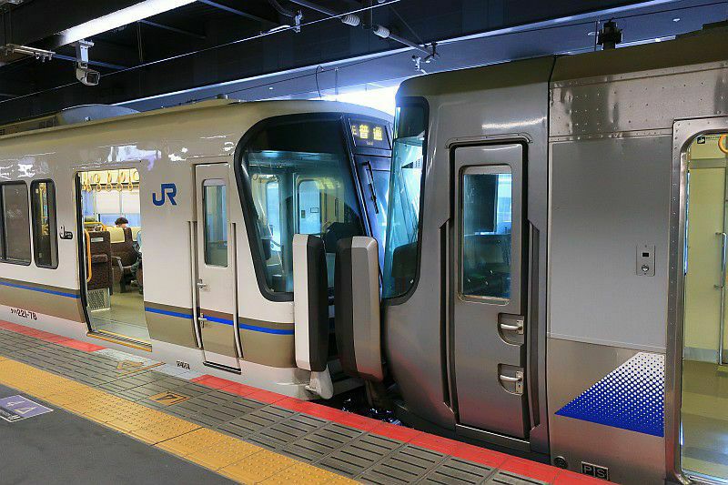京都駅から乗り込んだのは、221系と223系阪和色の併結でした。