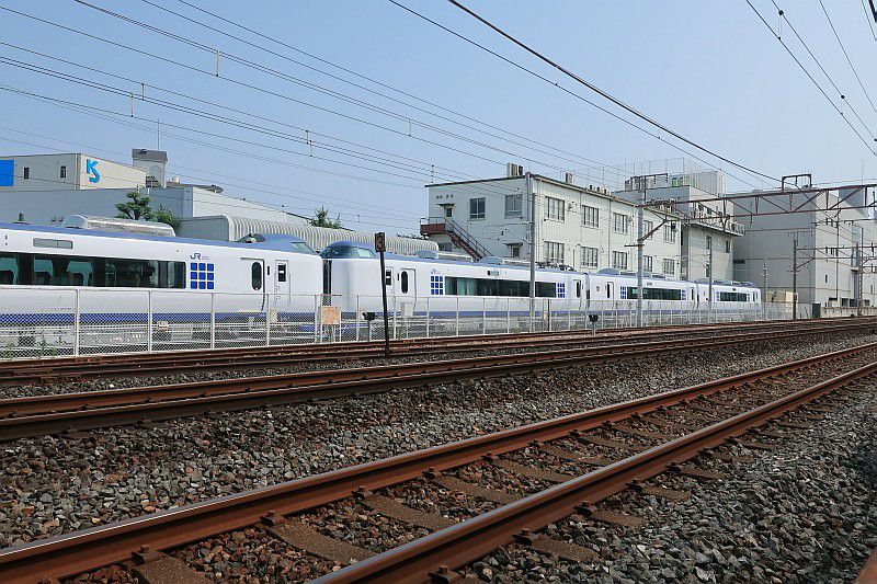 2019年07月28日 271系はるか 鉄道 0 久しぶりに近畿車両を見に行ってみたら、271系「はるか」がいました。 形状は287系にそっくりな気がするんですが、 色が変わるだけで、一目瞭然で「はるか」ですねえ。。。 [0回]PR