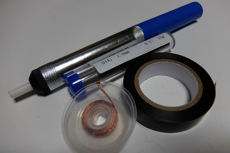 続いて、ハンダ吸い取り線、絶縁テープ、ハンダ、ハンダ吸い取り器。