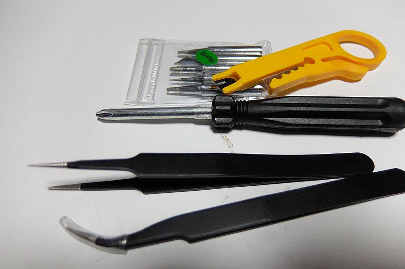 さらに、ピンセットが2種類、ドライバー、ワイヤストリッパー、交換用のこて先。