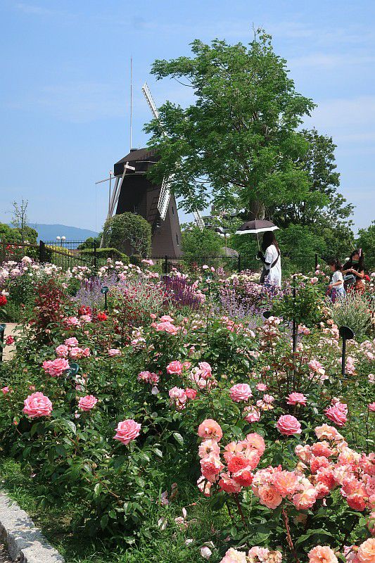 風車前の花壇は植え替え中であんまり咲いていませんでしたが、