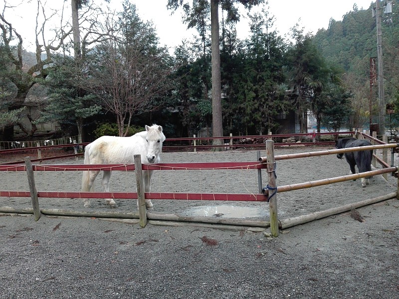 境内に白と黒のお馬さんがいました。