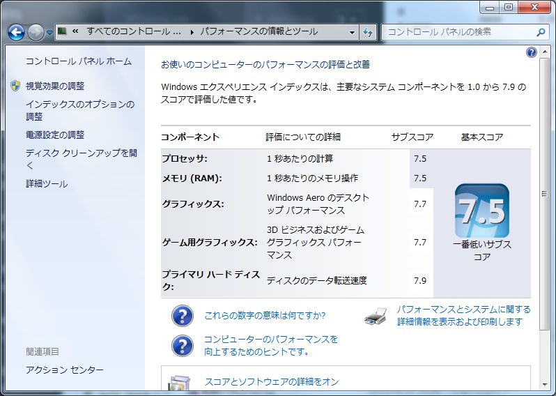 Windows7のエクスペリエンスもグラフィックだけ極端に低いし(笑)