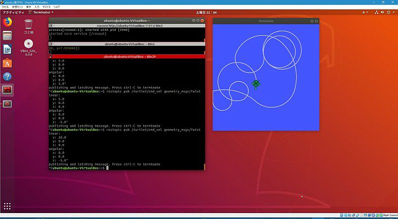 TurtleSimのカメさんを動かすところまでは辿り着きました。