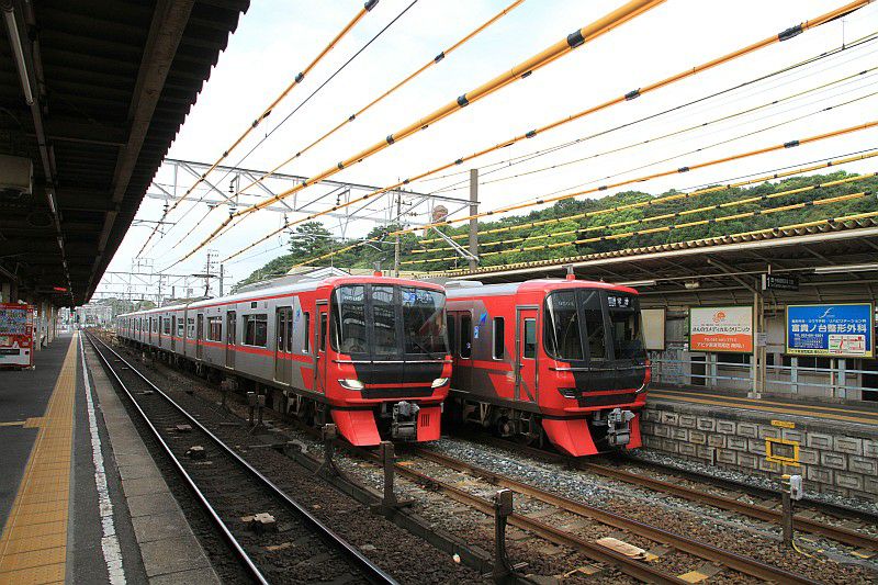 日常風景なのかもしれませんが、神宮前駅での特急同士の並び。
