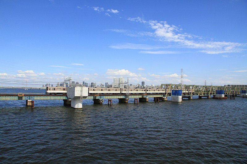 水面ギリギリの鉄橋を渡る列車も、工事が進めば見れなくなります。