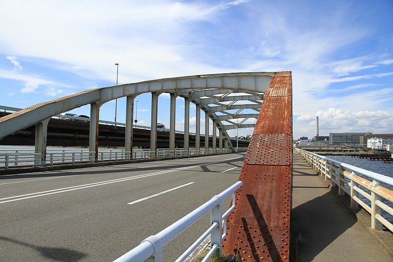 ちなみに、阪神の鉄橋も良いですが、国道の伝法大橋も古くていい感じです。