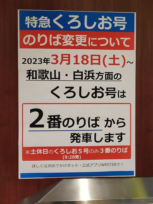 代わりに「くろしお」が3番線から2番線に変わるようです。