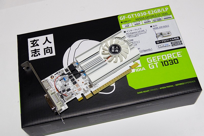 GeForce GT 1030が載っている、玄人志向のGF-GT1030-E2GB/LP。