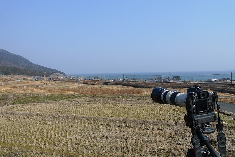 列車があんまり来ないので、カメラ越しに琵琶湖を撮ってみました(笑)