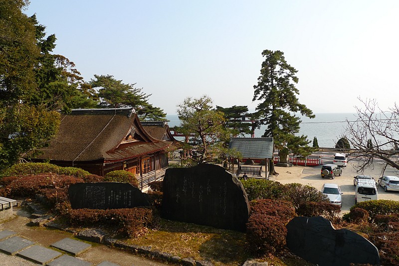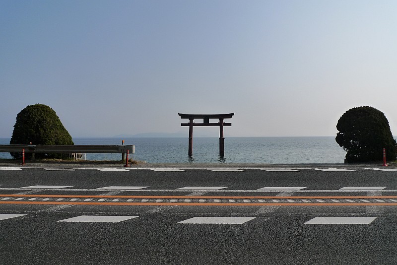 しばらく待っていましたが、車の流れが全然途切れないので、国道越しの琵琶湖と鳥居。