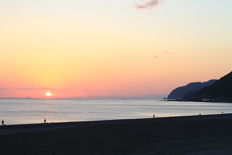 気を取り直して、ちょっと戻った砂浜からの夕日。