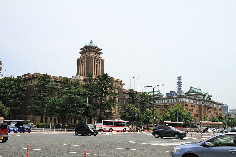 駅を降りてすぐに見える市役所と県庁の建物。