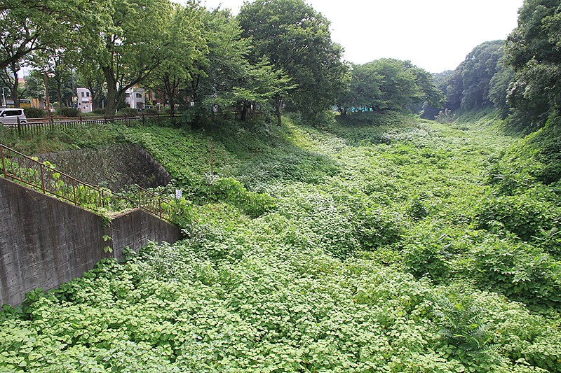 こちらもお堀の末端は周りとの高低差もフラットでした。