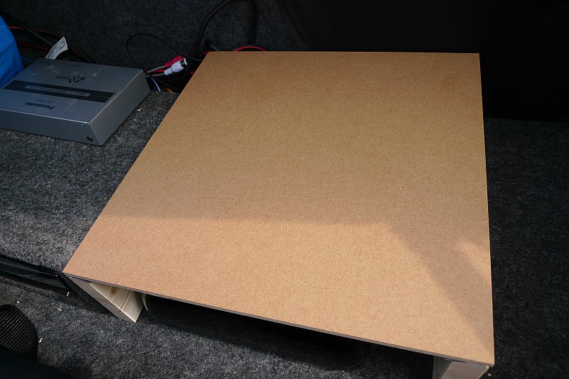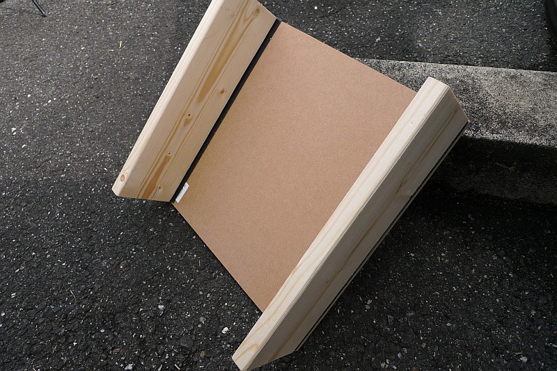 コーナンで板と角材を買ってきて両面テープで接着して完成です。