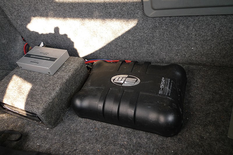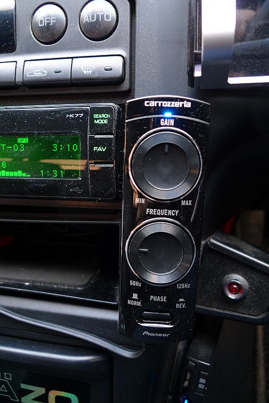 R33のシート下に収まるわけもなく、今回もトランクに設置しています。